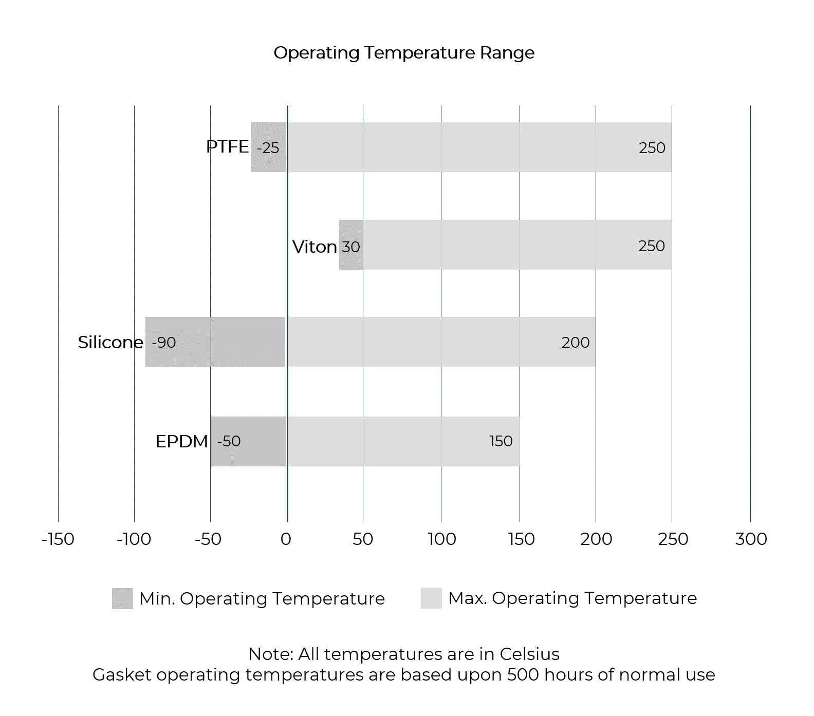 - Hygienic Silicone, PTFE Solid, Viton® and EPDM material options.